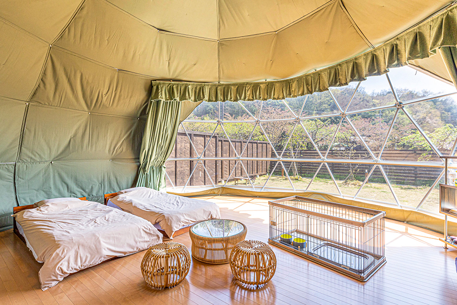 アクアヴィレッジ京都天橋立では、愛犬同伴可能のドームテントをご用意しています。