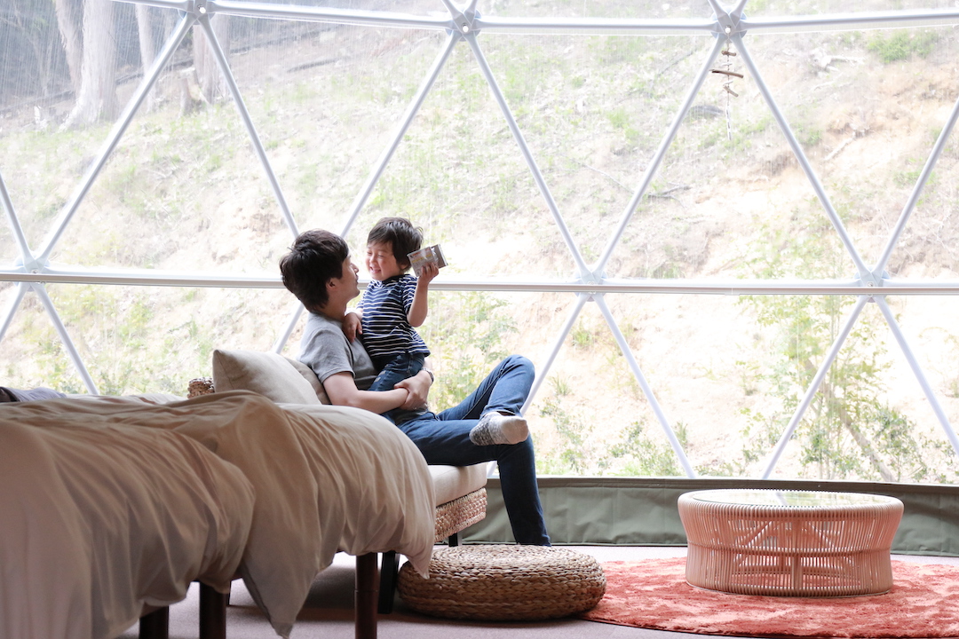 宿泊するのは、4ベッドを備えたファミリー向けドームテント。