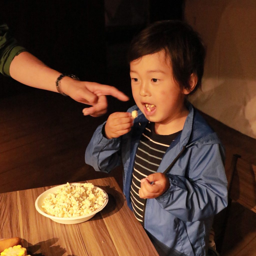 火おこしから始まり、焚き火を使ってポップコーン作りに挑戦!